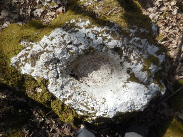 Je poste les photos d'un rocher creusé situé dans un bois , il n'est pas fait pour recevoir de l'eau de pluie car pas de margelle inclinée vers l'intérieur