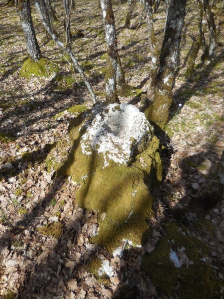 On trouve souvent par ici des rochers calcaires creusés chimiquement par l'action de l'eau de pluie , mais celui-ci relève d'un travail de taille manifeste