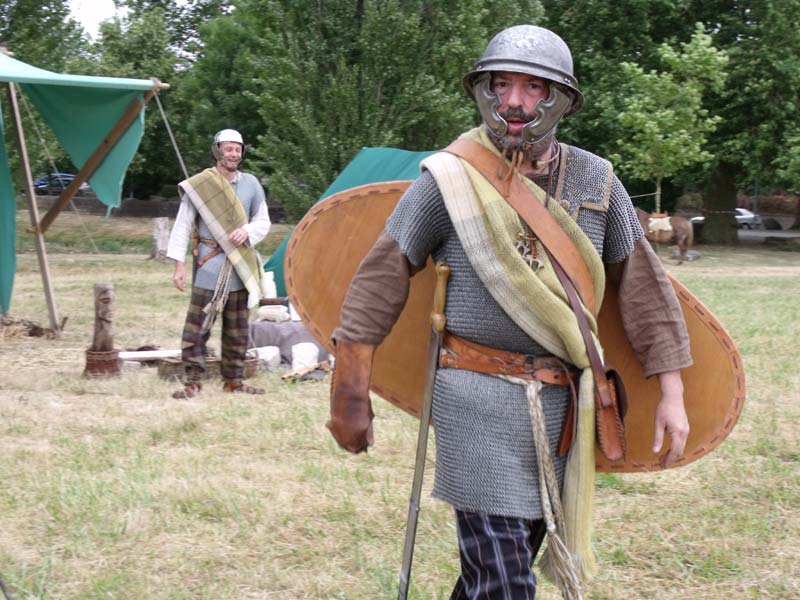 Genava, note que le fourreau d'Embleton, Cumberland ressemble à celui de Mortonhall, Greece and Rome at war / Peter Connolly, p. 116 et que la poignée de l'épée est divisée par une "bague" ce qui pourrait faire penser, à tort, à une épée à deux mains, la longueur de ce type d'épée variant entre 55 et 75 cm ne si prêtant guerre. A moins que l'on puisse envisager une épée batarde = à 1 main et demi mais je n'y crois pas.