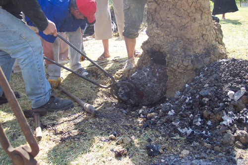 Salut, un exemple de bas fourneau pour réduction du minerai de fer expérimentation réalisée le 19 juin 2005 à Barret (16), par Pascal Renoux, Jean-Marc Debais et Jean-Claude Leblanc et al.