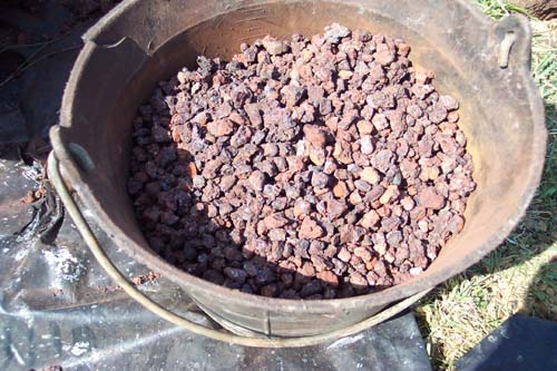 après l'ouverture du four qui a fourni du fer, de la fonte, de l'acier et surtout beaucoup de scories