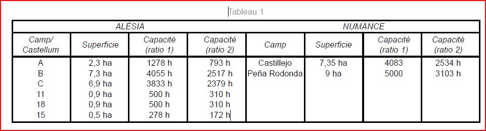 Pour le camp de La Roche Blanche, le problème n'est pas de savoir si c'est choquant ou pas mais plutôt de savoir s'il est possible et plausible qu'une surface de 5,5ha soit suffisante pour "contenir" 2 légions ce qui représente au bas mot entre 8000 à 10 000 hommes et ceci au vu des données de spécialiste comme Reddé. Les camps d'Alésia ou de Numance d'environ 7 ha ne peuvent accueillir que 4000 hommes dans le meilleur des cas si j'en crois les données du tableau joint. Vous parlez de ressemblance entre les camps, pouvez-vous développer car les éléments de fortifications de porte de la castramétation romaine comme "titulus" et "clavicule" n'ont jamais été mis en évidence sur le petit camp de La Roche Blanche ainsi que sur le grand camp d'Orcet alors qu'ils ont pu être observé à Alésia! Ainsi qu'à Mauchamp dans l'Aisne!