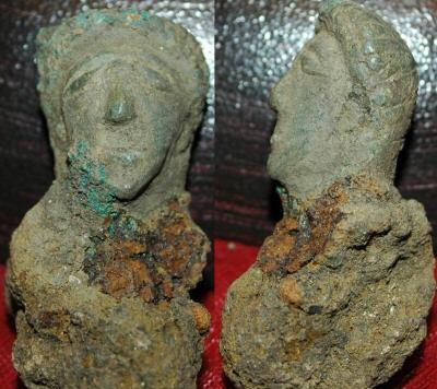 Le premier objet paraît de type africain ?! Quand au second au visage comme jeté en arrière, sourcils proéminents épousant le contour des yeux en amande, nez fort triangulaire, bouche horizontale ..., quelque chose d'un petit air de famille ressemblant avec la Vénus de la stèle du Fin Renard à Bourges ? :