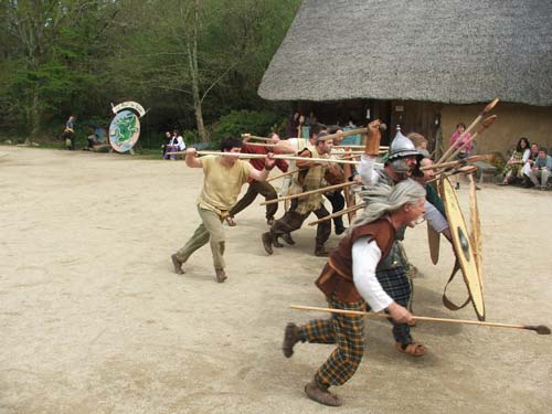 Pour revenir à un reproche que nous fait souvent Muskull, il n'est pas le seul, l'omniprésence de l'élément guerrier, je crois que cela tient à la civilisation gauloise elle-même, les citoyens sont des guerriers, la guerre et la religion envahissent toute la vie quotidienne même s'ils ne passent pas tout leur temps à se battre ! Donc pour nous autres reconstituteurs, en déplacement, mais la plupart des troupes ne sont que cela, les GDE étant les seuls à avoir un village, il nous est impossible de montrer la vie des paysans, seulement celles des guerriers et artisans homme et femmes qui eux se déplaçaient. C'est réducteur mais cela vaut mieux que rien du tout. Nous travaillons sur les costumes, les accessoires, les instruments de musique maintenant avec nos petits tambours... Jean-Paul Brethenoux. Sedullos Lemouico immi exobnos in catue ! ΣΕΔΟΥΛΛΟΣ (Graecum est, non legitur !)