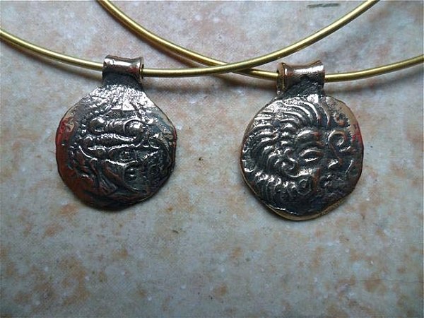 Un numismate local m'a permis de faire des moulages de monnaies osismes et coriosolites de sa collection. A partir des moules en silicone, j'ai pu couler quelques pendentifs