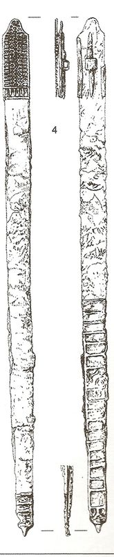Voici un scan d'une partie de la planche 11 de l'article de Tomas Bochnak, p. 174 T. Bochnak, "Les Celtes et leurs voisins septentrionaux", in Celtes et Gaulois l'Archéologie face à l'Histoire - Les civilisés et les barbares du Ve au IIe siècle avant J.-C., CAE, 2006 25 € dessin T. Bochnak, d'après Dabrowska, 1997 Culture de Przeworsk mobilier de la tombe 301 de Kamiencczyk Une grande épée celtique d'importation avec fourreau Par souci du respect du doit d'auteur, je ne mets que ce dessin. Jean-Paul Brethenoux. Sedullos Lemouico immi exobnos in catue ! ΣΕΔΟΥΛΛΟΣ (Graecum est, non legitur !)