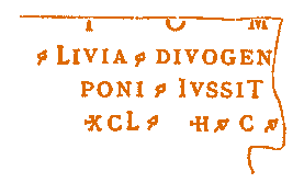 "À Jupiter, très bon, très grand, Livia Divogena, a ordonné de placer (cette dédicace), pour 150 deniers, son héritier a pris soin (de la faire poser)."